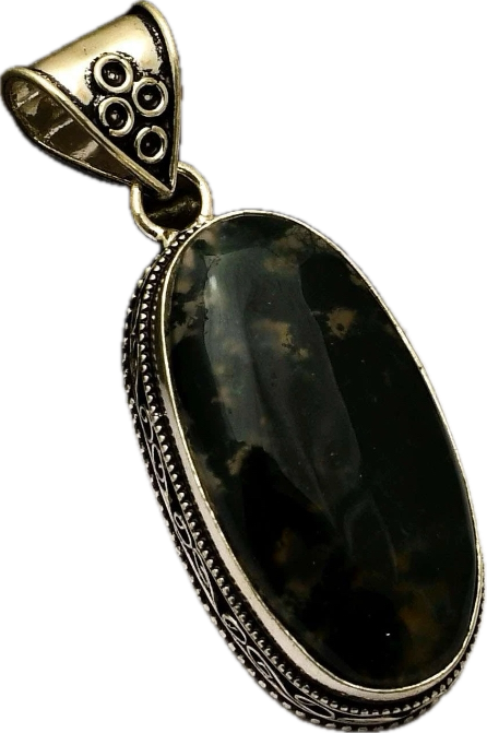 Moss Agate Ethnic Handmade Pendant Sterling Silver 2.2”