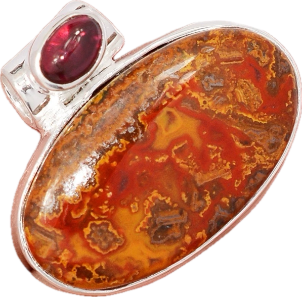 Natural Seam Agate From Morocco & Garnet Silver Pendant